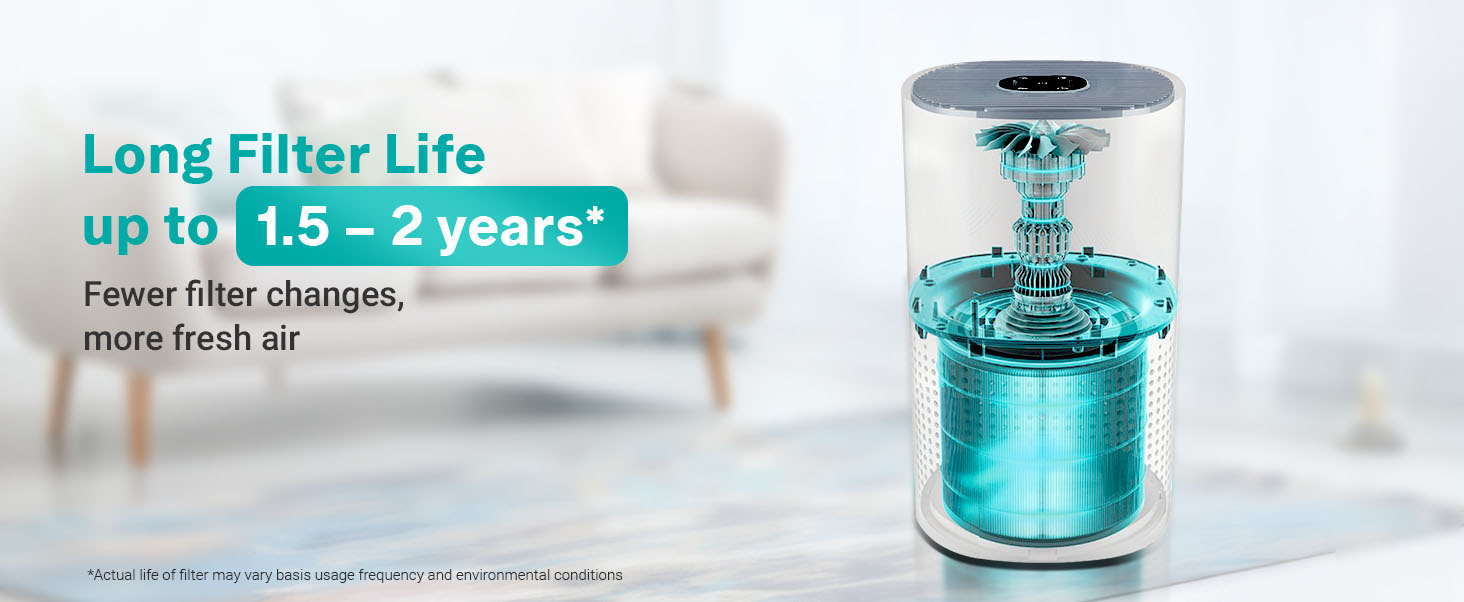 Designed to deliver healthier air for indoor living spaces using advanced multi-stage purification. The Surround 360° Air Intake Technology ensures air from every corner is drawn in and purified effectively.